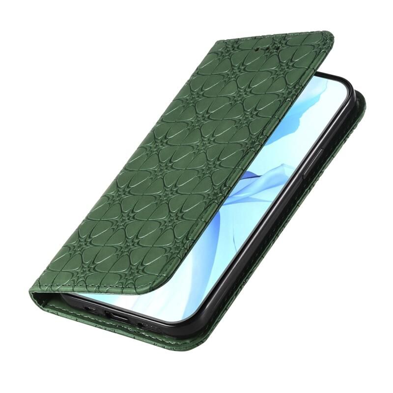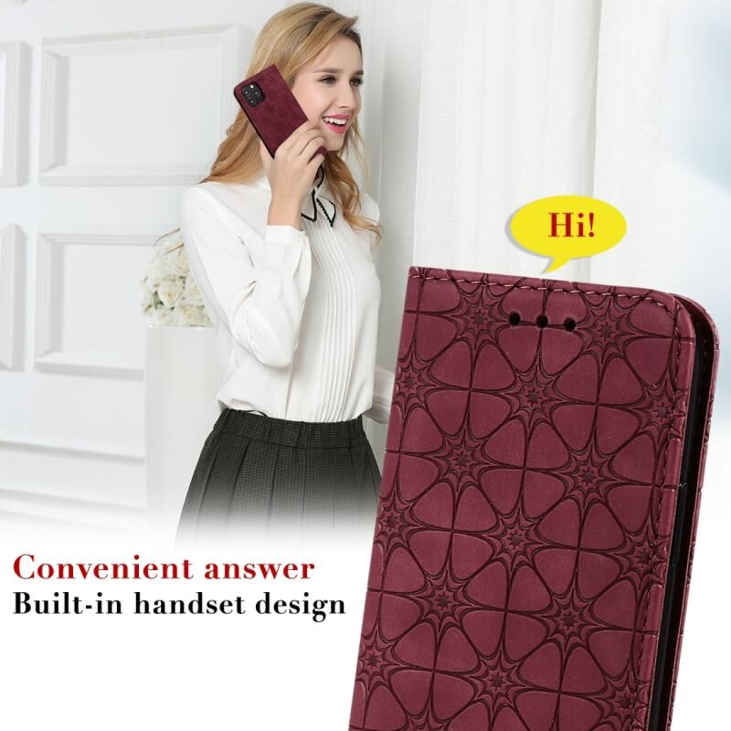 Θήκη δέρματος με μαγνητικό κλείσιμο, οριζόντια, με ανάγλυφο σχέδιο τυχερών λουλουδιών και θήκη/υποδοχές για κάρτες για iPhone 12 / 12 Pro (Σκούρο Μπλε)