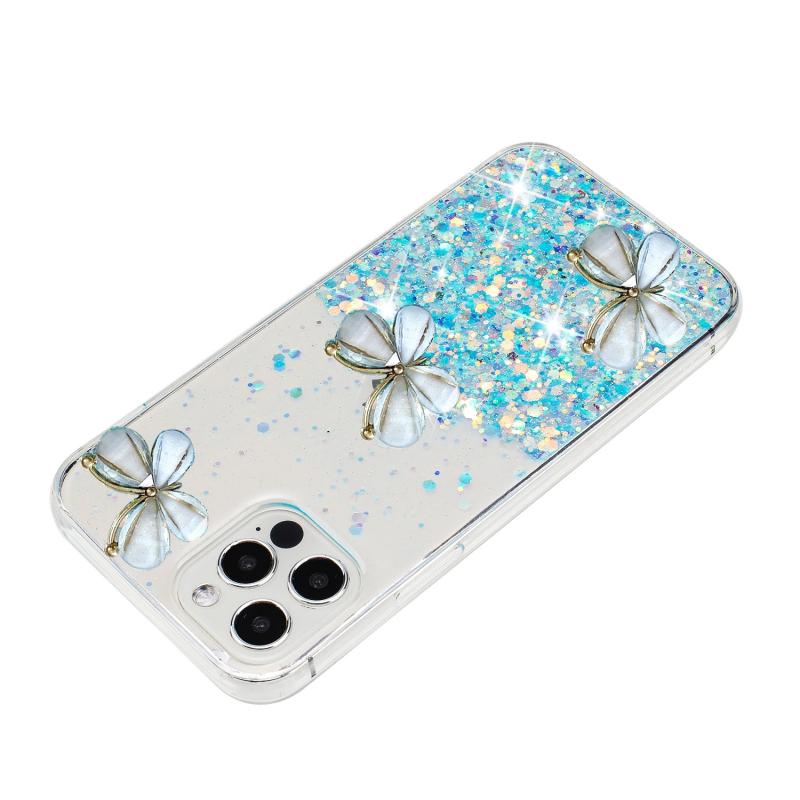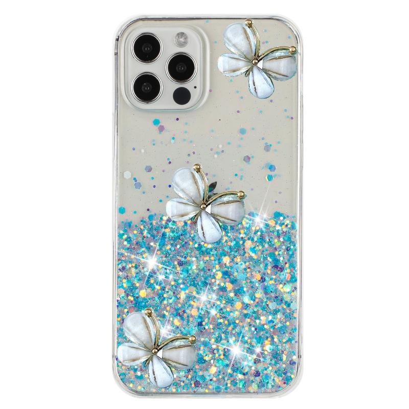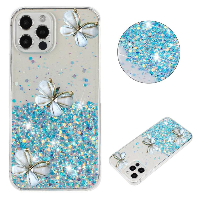 For iPhone 12 / 12 Pro Luminous Starry Sky Glitter Butterfly TPU Phone Case(Blue)