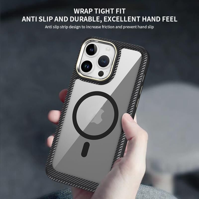 For iPhone 12 / 12 Pro MagSafe Carbon Fiber Transparent Back Panel Phone Case(Purple)
