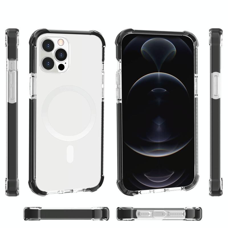 For iPhone 12 / 12 Pro Magsafe Magnetic Acrylic Shockproof Phone Case(Transparent Black)