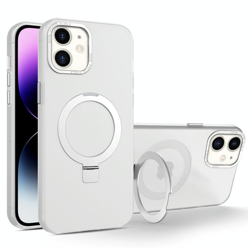 For iPhone 12 / 12 Pro MagSafe Metal Holder Frosted Translucent Phone Case(White)