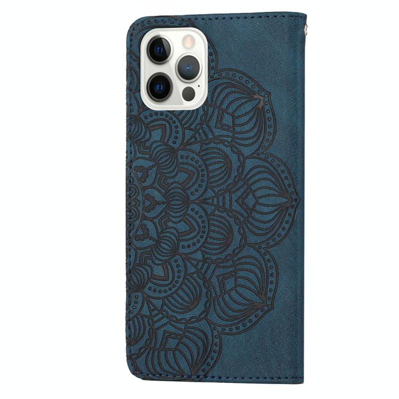 Θήκη τηλεφώνου από δέρμα με ανάγλυφο μανταλά για iPhone 12 / 12 Pro (Μπλε)