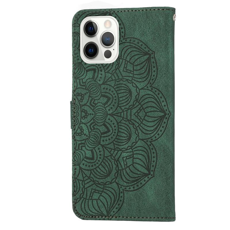 For iPhone 12 / 12 Pro Mandala Embossed Flip Leather Phone Case(Green)