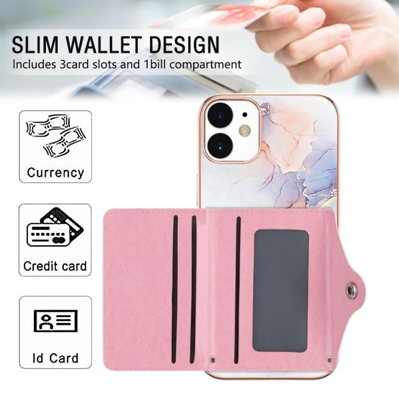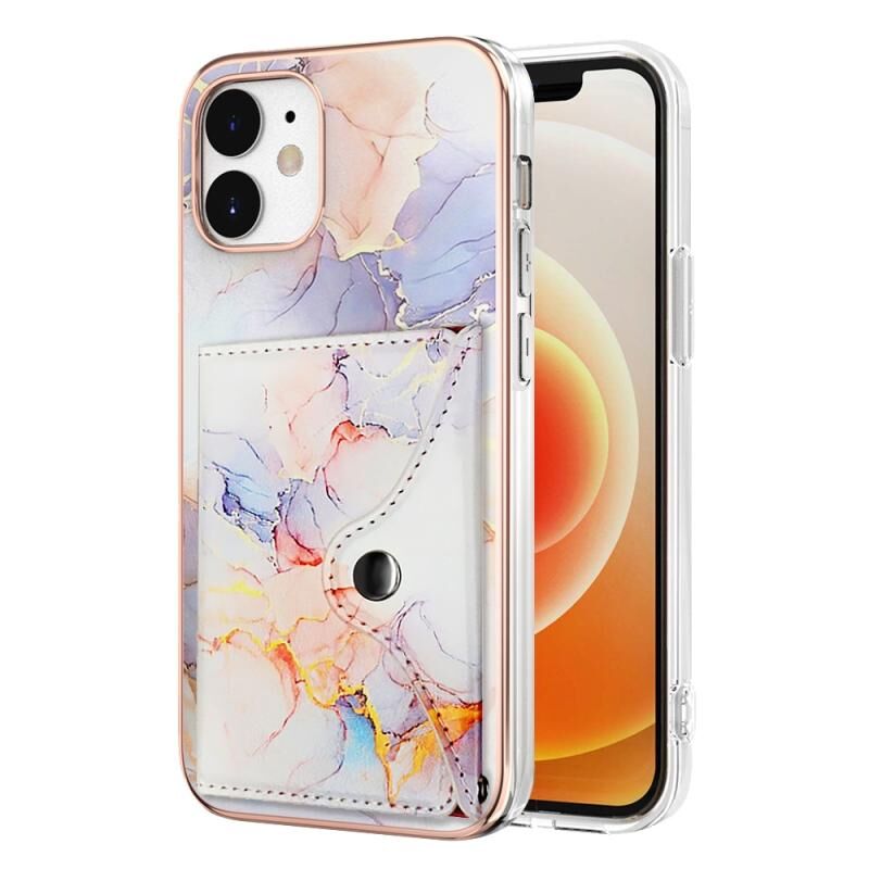 For iPhone 12 / 12 Pro Marble Pattern IMD Card Slot Phone Case(Galaxy Marble White)