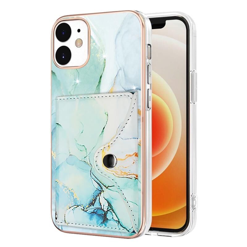 For iPhone 12 / 12 Pro Marble Pattern IMD Card Slot Phone Case(Green)