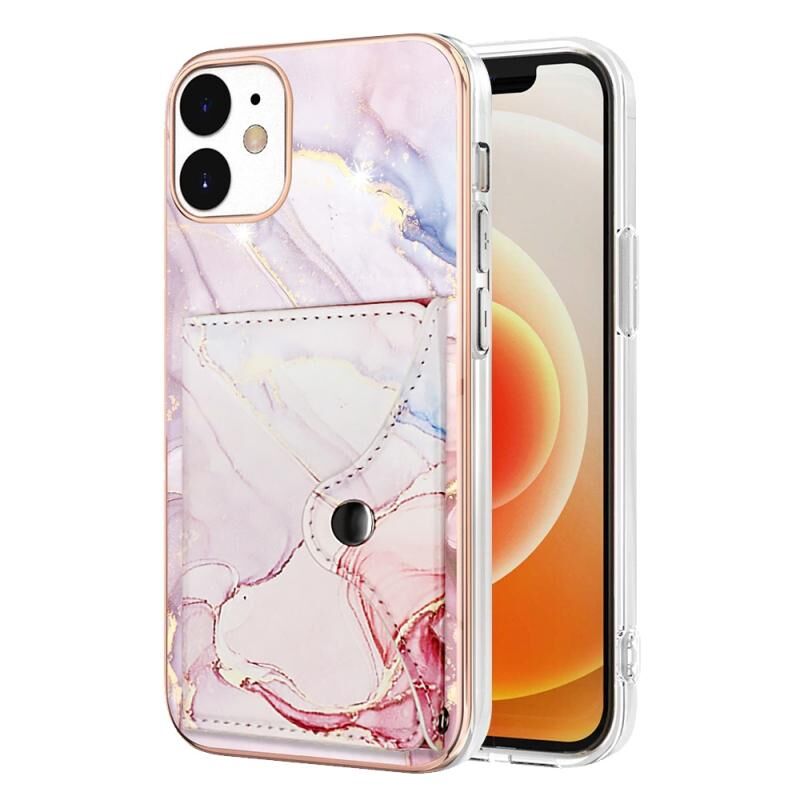 For iPhone 12 / 12 Pro Marble Pattern IMD Card Slot Phone Case(Rose Gold)