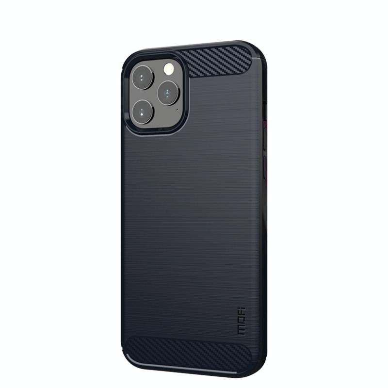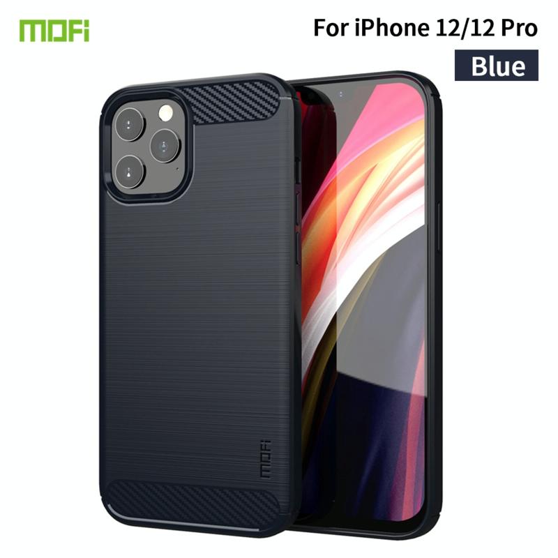 For iPhone 12 / 12 Pro MOF Gentleness Series Brushed Texture Carbon Fiber Soft TPU Case(Blue) (MOFI)