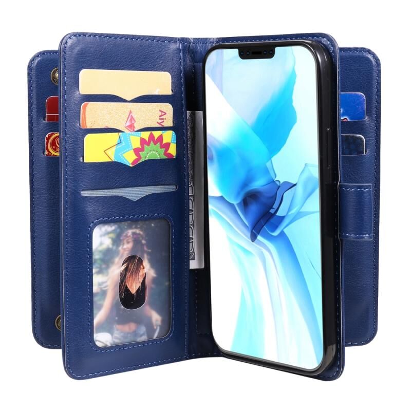 Θήκη για iPhone 12 / 12 Pro, πολυλειτουργική μαγνητική θήκη από δέρμα με οριζόντιο άνοιγμα, μονόχρωμη, με αγκράφα από χαλκό, 10 θέσεις για κάρτες, πορτοφόλι, βάση & κορνίζα φωτογραφιών (Κρασί)