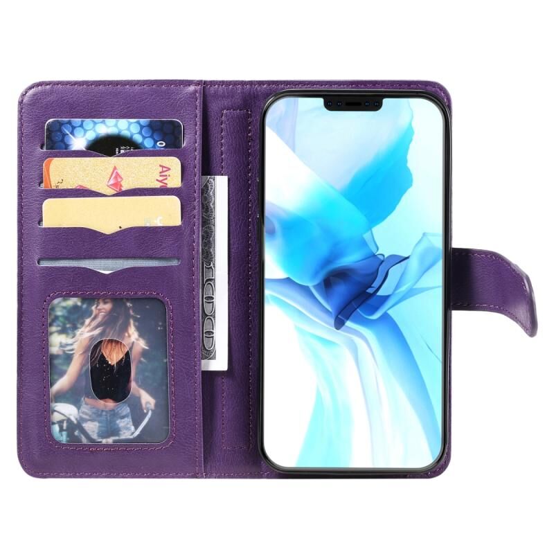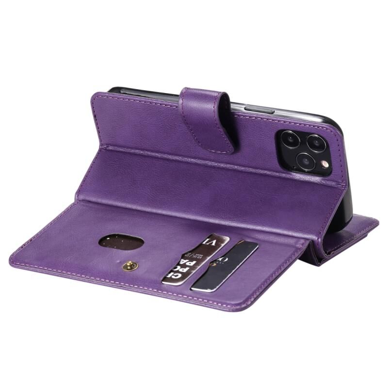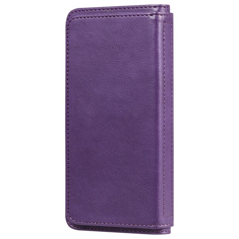 Θήκη για iPhone 12 / 12 Pro, πολυλειτουργική μαγνητική θήκη από δέρμα με οριζόντιο άνοιγμα, μονόχρωμη, με αγκράφα από χαλκό, 10 θέσεις για κάρτες, πορτοφόλι, βάση & κορνίζα φωτογραφιών (Κρασί)
