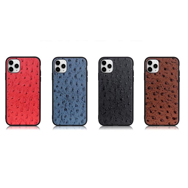 Θήκη προστασίας από γνήσιο δέρμα με υφή στρουθοκάμπου για iPhone 12 / 12 Pro (Μαύρο)