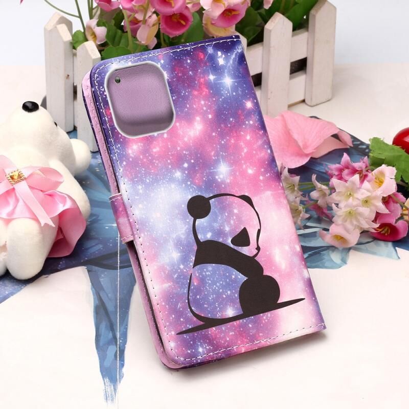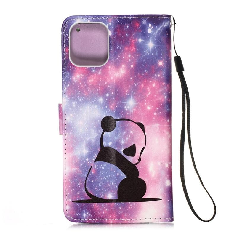 Θήκη για iPhone 12 / 12 Pro με ζωγραφιστό, επίπεδο υφή δέρματος, με κορδόνι, θήκη για κάρτες, πορτοφόλι και στήριξη (Μωρό Πάντα)