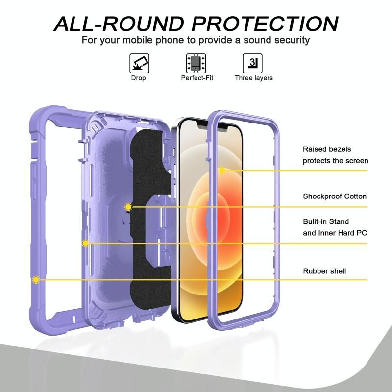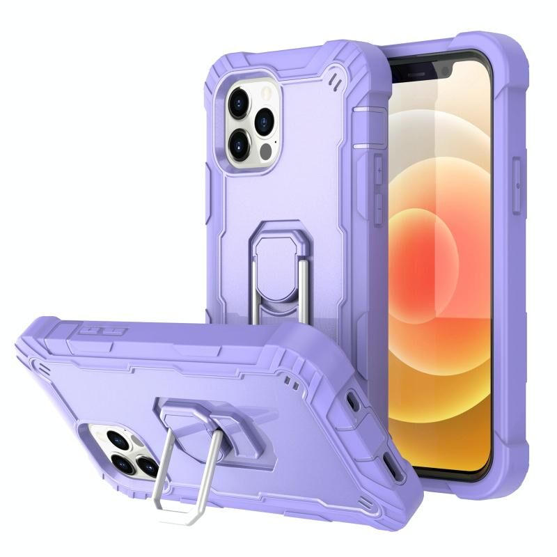 For iPhone 12 / 12 Pro PC + Rubber 3-layers Shockproof Protective Case with Rotating Holder(Purple)