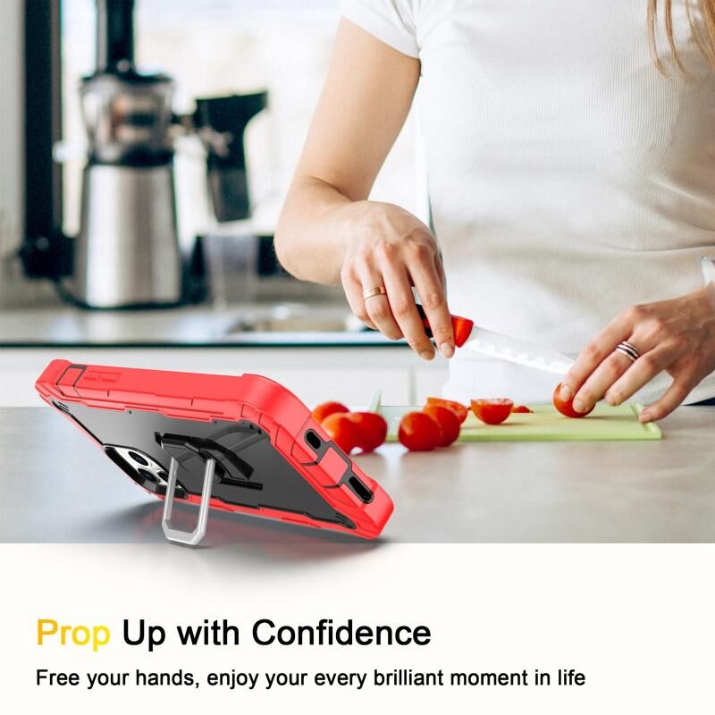 For iPhone 12 / 12 Pro PC + Rubber 3-layers Shockproof Protective Case with Rotating Holder(Red + Black)
