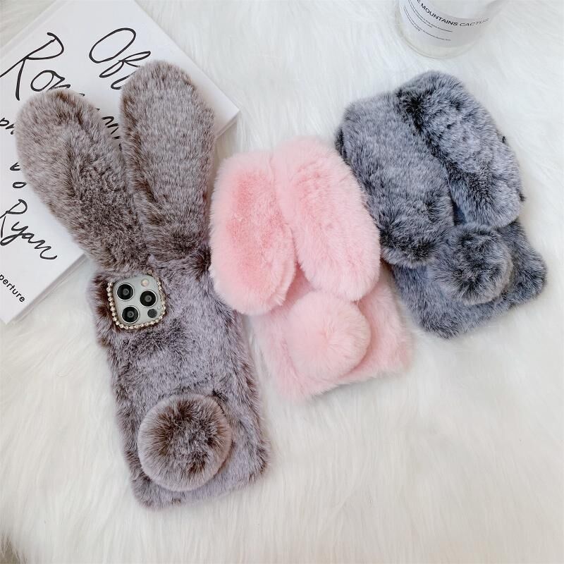 Για iPhone 12 / 12 Pro βελούδινη θήκη προστασίας TPU μαλακού κουνελιού (ροζ)