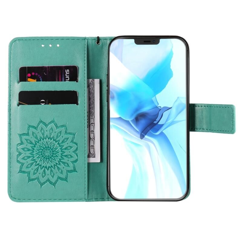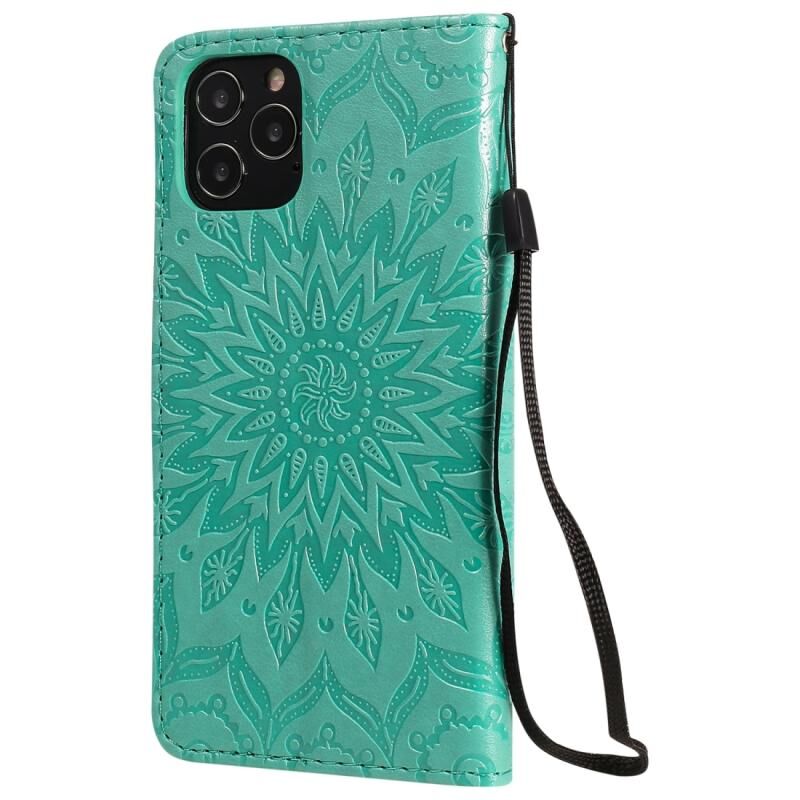 Θήκη για iPhone 12 / 12 Pro με εκτυπωμένο σχέδιο ηλιοτρόπιου, οριζόντια αναδιπλούμενη από δερματίνη PU με θήκη & υποδοχές για κάρτες & πορτοφόλι & κορδόνι (Μπλε)