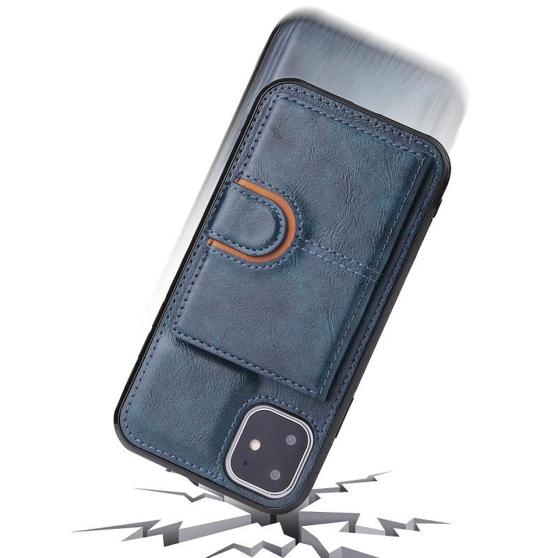 Θήκη πλάτης για iPhone 12 / 12 Pro από PU + TPU + PC, ανθεκτική σε κρούσεις, με θήκη για κάρτες & στήριξη (Μαύρο)