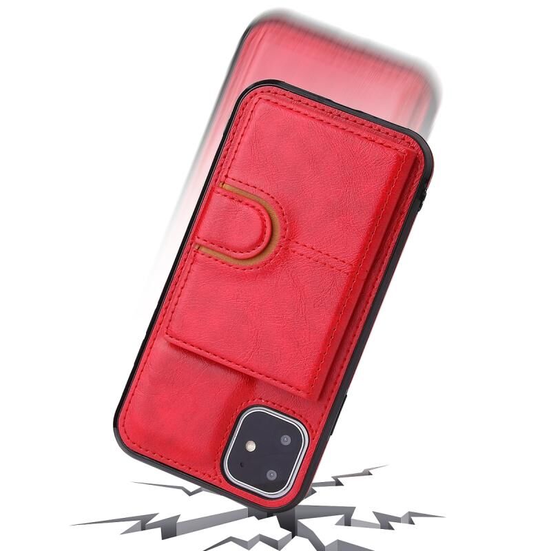 Θήκη πλάτης για iPhone 12 / 12 Pro από PU + TPU + PC, ανθεκτική σε κρούσεις, με θήκη για κάρτες & στήριξη (Μαύρο)