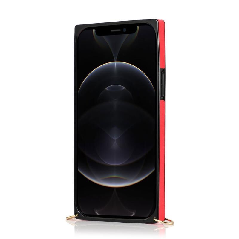 Θήκη προστασίας για iPhone 12 / 12 Pro από PU+TPU, ανθεκτική σε κρούσεις, με λουρί ώμου, βάση στήριξης, θήκη για κάρτες και λουρί καρπού (Χρυσό Ρόδι)