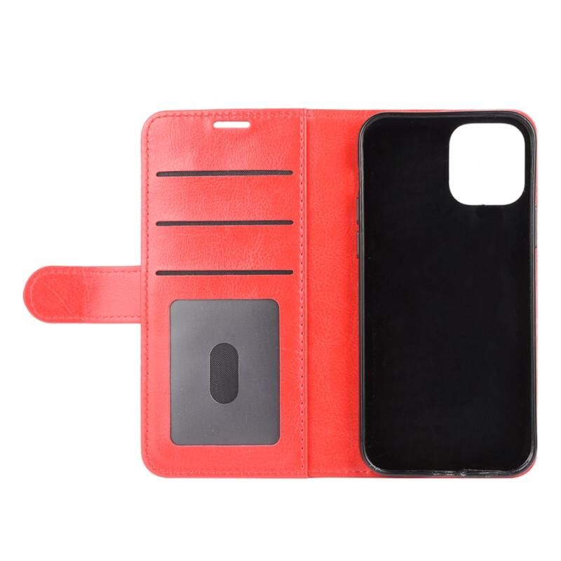 Θήκη προστασίας για iPhone 12 / 12 Pro με υφή R64, οριζόντια αναδιπλούμενη με βάση στήριξης & θήκες για κάρτες & πορτοφόλι & κορνίζα φωτογραφιών (Κόκκινη)