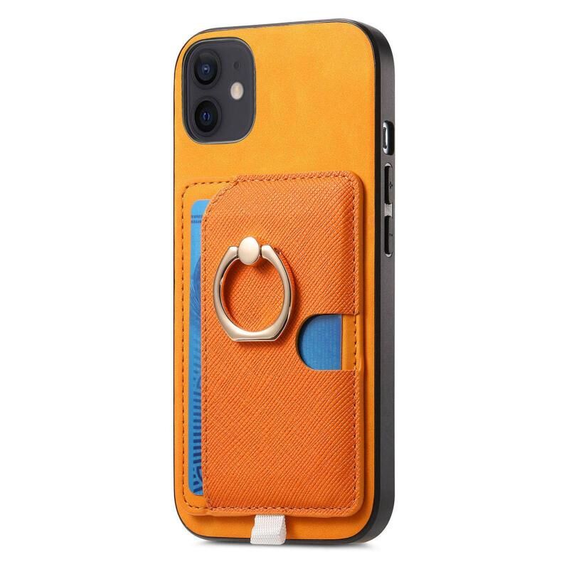 For iPhone 12 / 12 Pro Retro Cross Leather Ring Side Insert Card Bag MagSafe Phone Case(Yellow)