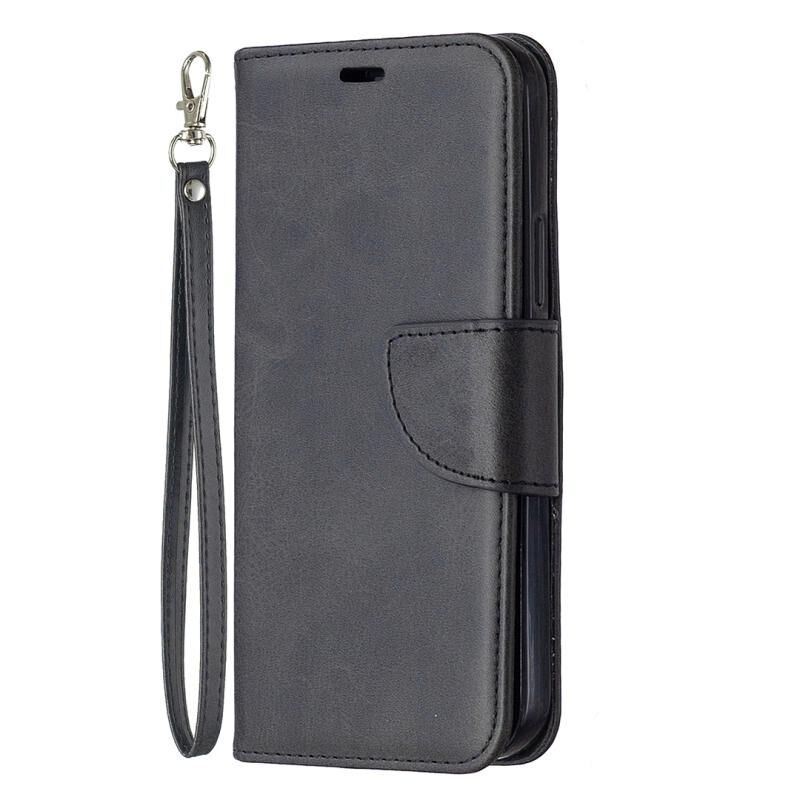 Θήκη για iPhone 12 / 12 Pro, Ρετρό Υφή Δέρματος Αμνού, Μονόχρωμη, Οριζόντια, Flip από Δερματίνη PU, με Θήκη & Θήκες Καρτών & Πορτοφόλι & Λουρί (Μαύρο)