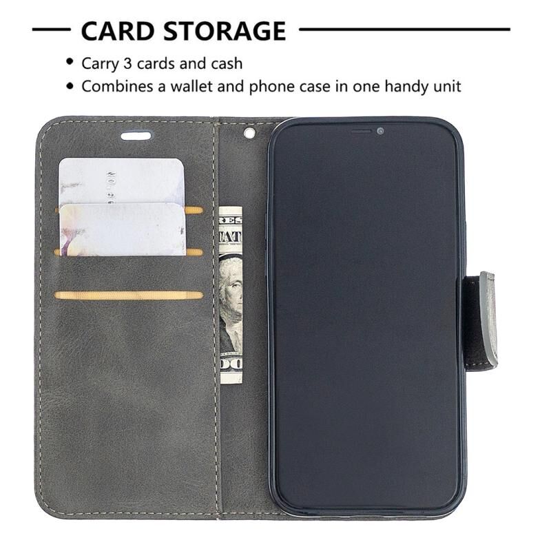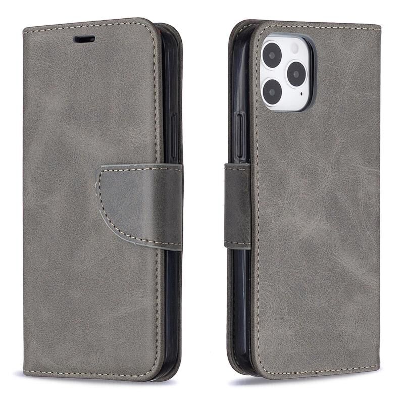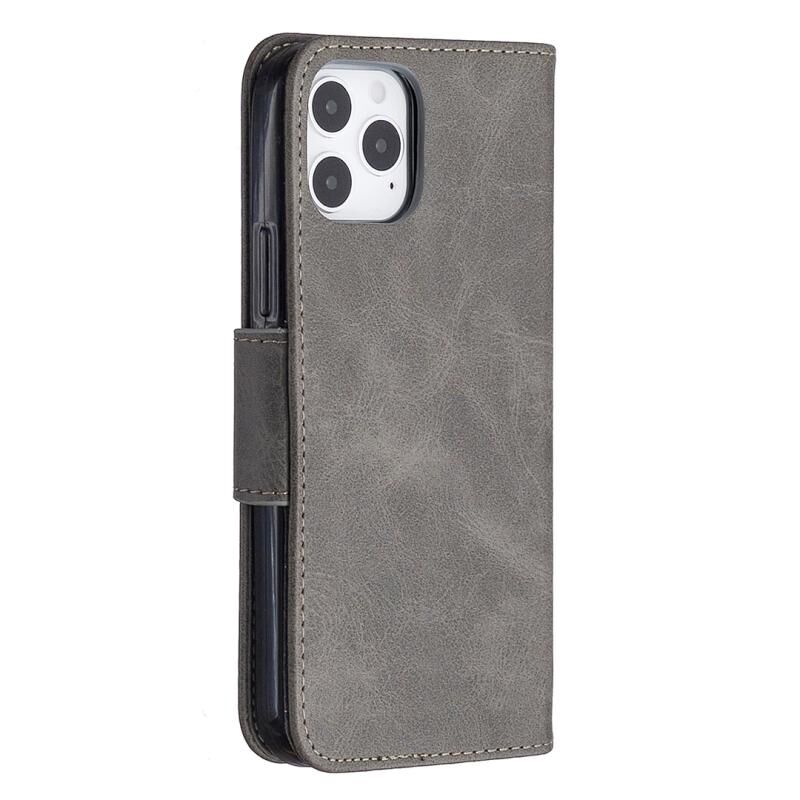 Θήκη για iPhone 12 / 12 Pro, Ρετρό Υφή Δέρματος Αμνού, Μονόχρωμη, Οριζόντια, Flip από Δερματίνη PU, με Θήκη & Θήκες Καρτών & Πορτοφόλι & Λουρί (Μαύρο)