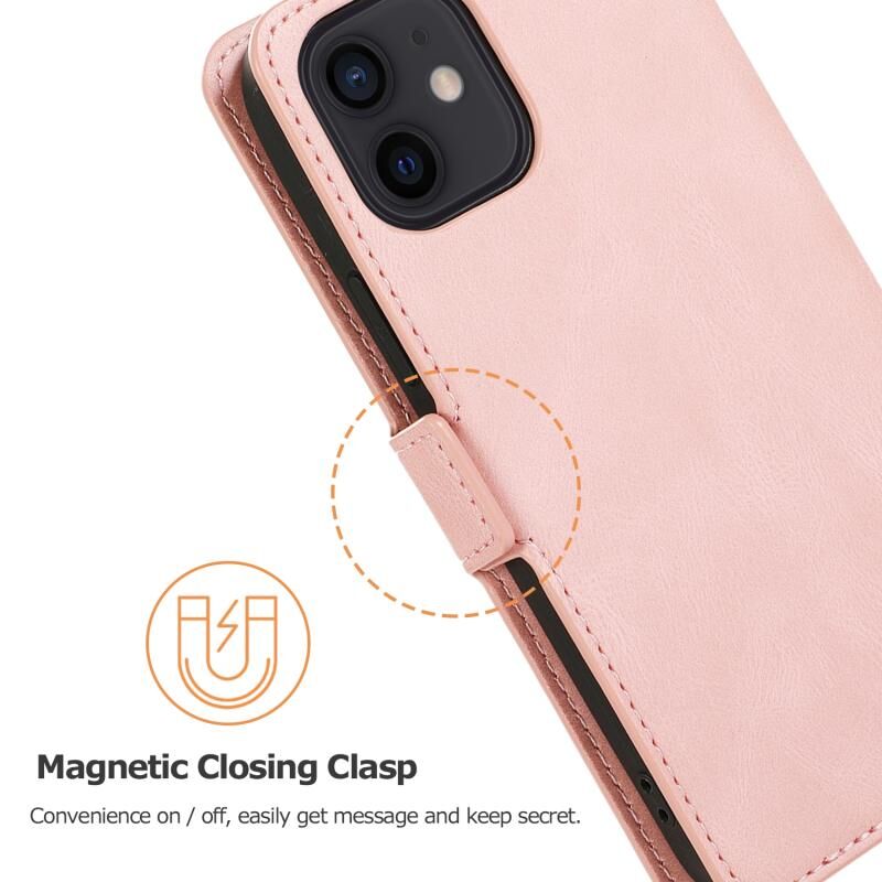 Θήκη δέρματος οριζόντιας αναδίπλωσης με μαγνητικό κούμπωμα για iPhone 12 / 12 Pro με βάση, θήκες καρτών, κορνίζα φωτογραφιών & πορτοφόλι (Μαύρο)
