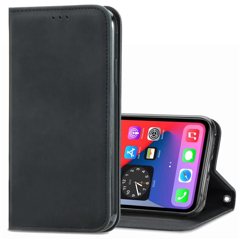 Θήκη δέρματος οριζόντιας αναδίπλωσης με μαγνητικό κλείσιμο για iPhone 12 / 12 Pro, με ρετρό αίσθηση, βάση στήριξης, θήκες για κάρτες, πορτοφόλι και κορνίζα φωτογραφιών (Μαύρο)