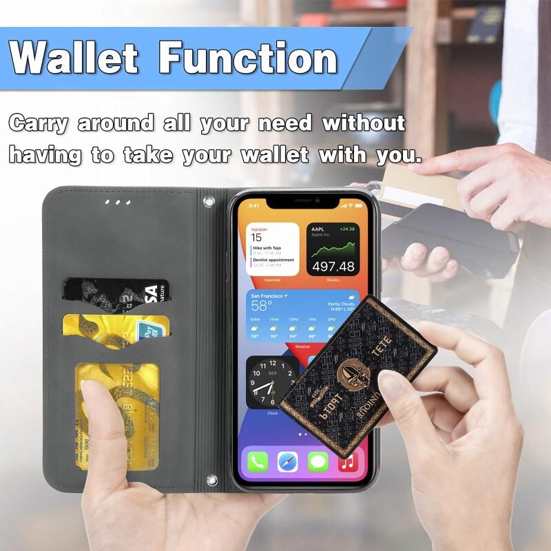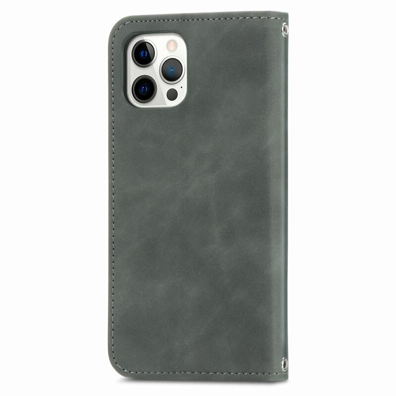 Θήκη δέρματος οριζόντιας αναδίπλωσης με μαγνητικό κλείσιμο για iPhone 12 / 12 Pro, με ρετρό αίσθηση, βάση στήριξης, θήκες για κάρτες, πορτοφόλι και κορνίζα φωτογραφιών (Μαύρο)