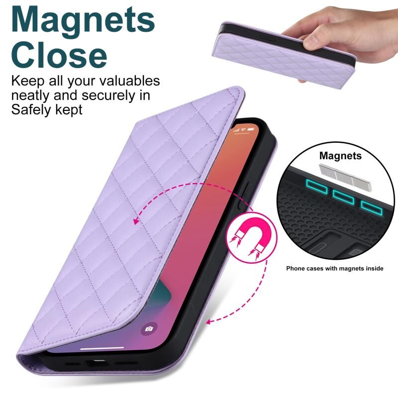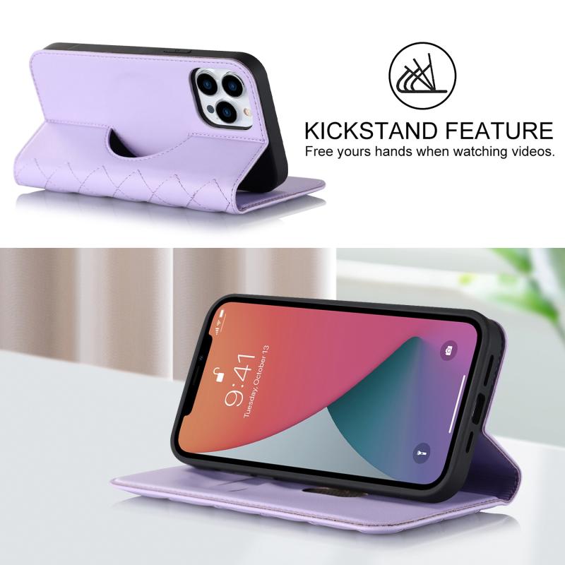 For iPhone 12 / 12 Pro Rhombic MagSafe RFID Anti-Theft Wallet Leather Phone Case(Purple)