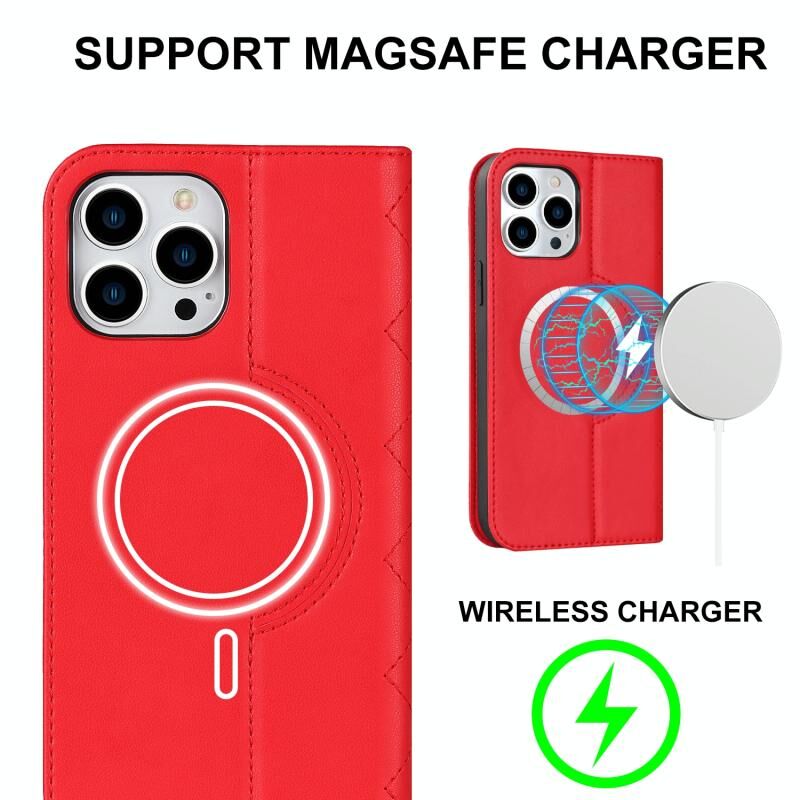For iPhone 12 / 12 Pro Rhombic MagSafe RFID Anti-Theft Wallet Leather Phone Case(Red)