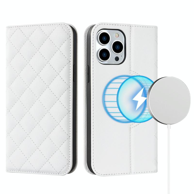 For iPhone 12 / 12 Pro Rhombic MagSafe RFID Anti-Theft Wallet Leather Phone Case(White)