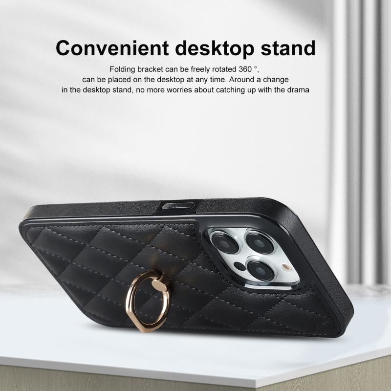 For iPhone 12 / 12 Pro Rhombic PU Leather Phone Case with Ring Holder(Black)