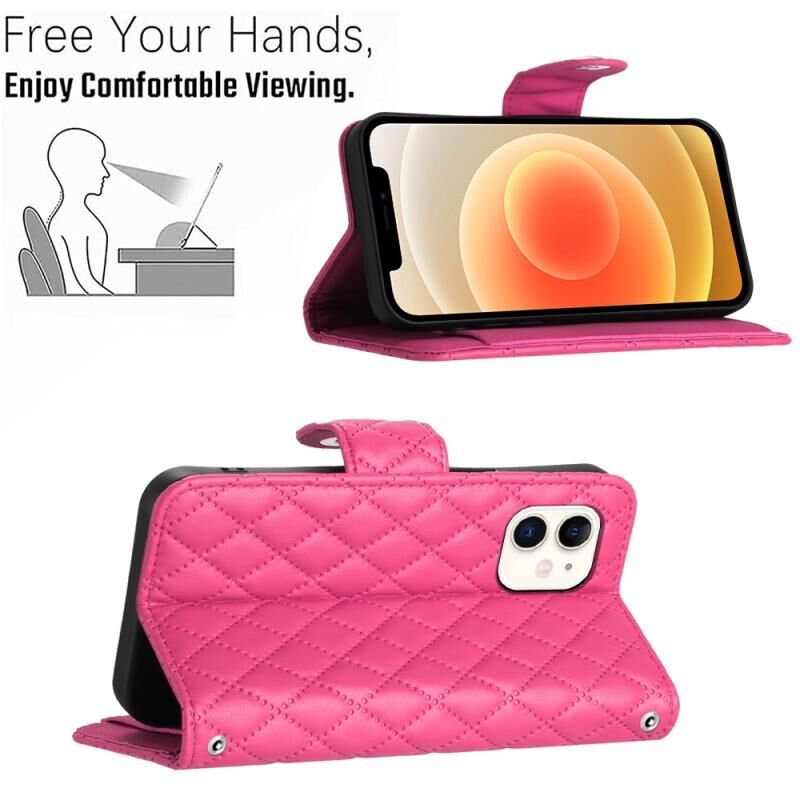 Θήκη τηλεφώνου από δέρμα με ανάγλυφη υφή ρόμβου για iPhone 12 / 12 Pro με κορδόνι (Μαύρο)