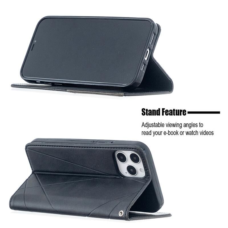 Θήκη δέρματος με μαγνητικό κλείσιμο, οριζόντια, με υφή ρόμβου για iPhone 12 / 12 Pro με βάση & θήκες καρτών (Μαύρο)
