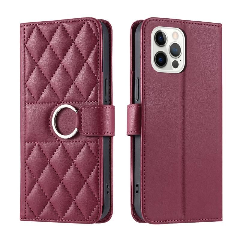 For iPhone 12 / 12 Pro Ring Buckle Rhombic Leather Phone Case(Red)