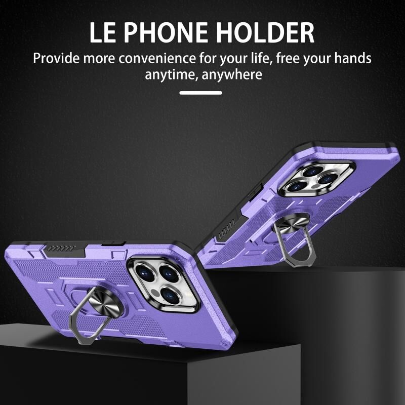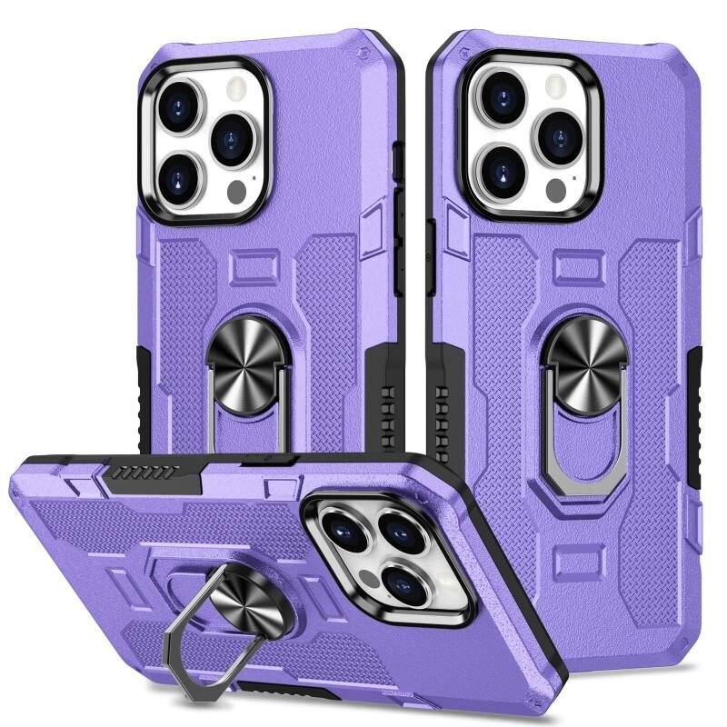 For iPhone 12 / 12 Pro Ring Holder Armor Hybrid Phone Case(Purple)