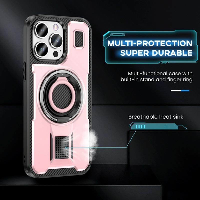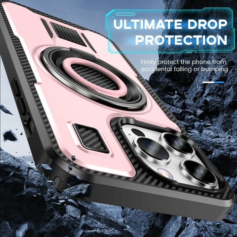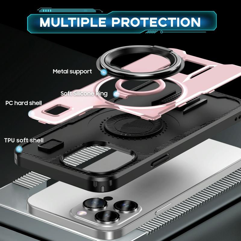 3. Δακτύλιος Σιλικόνης και Βάση: Δεν παρέχει μόνο βασική προστασία, αλλά η θήκη λειτουργεί και ως λαβή για να κρατάτε σταθερά το τηλέφωνό σας. Και ως βάση τηλεφώνου που επιτρέπει την κατακόρυφη ή οριζόντια λειτουργία σε πολλαπλές γωνίες.