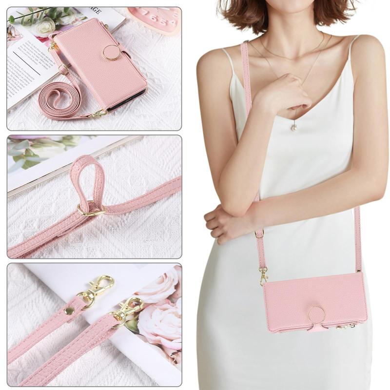 Θήκη iPhone 12 / 12 Pro Δερμάτινη με Λουρί & Φερμουάρ (Ροζ)