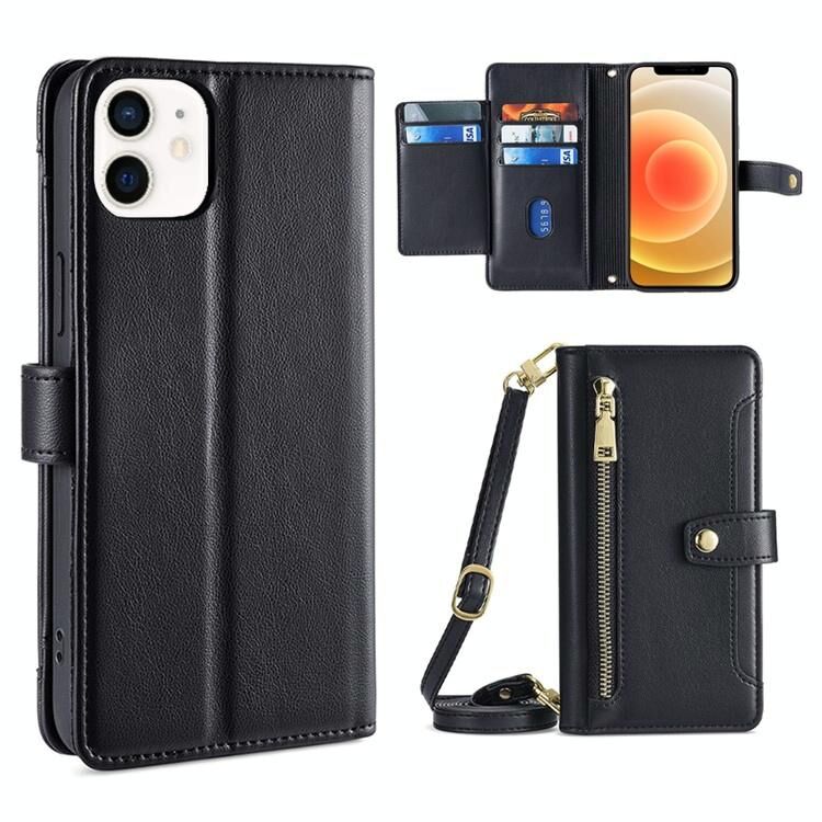 For iPhone 12 / 12 Pro Sheep Texture Cross-body Zipper Wallet Leather Phone Case(Black)