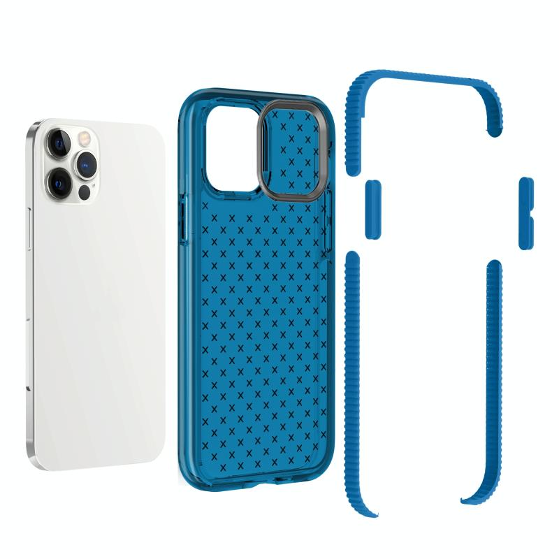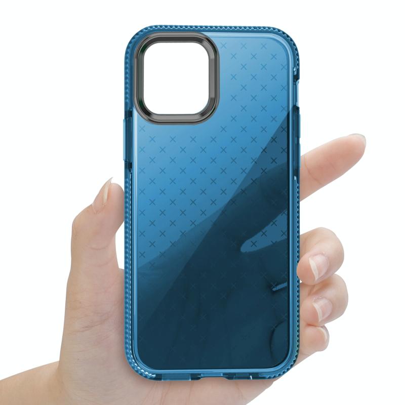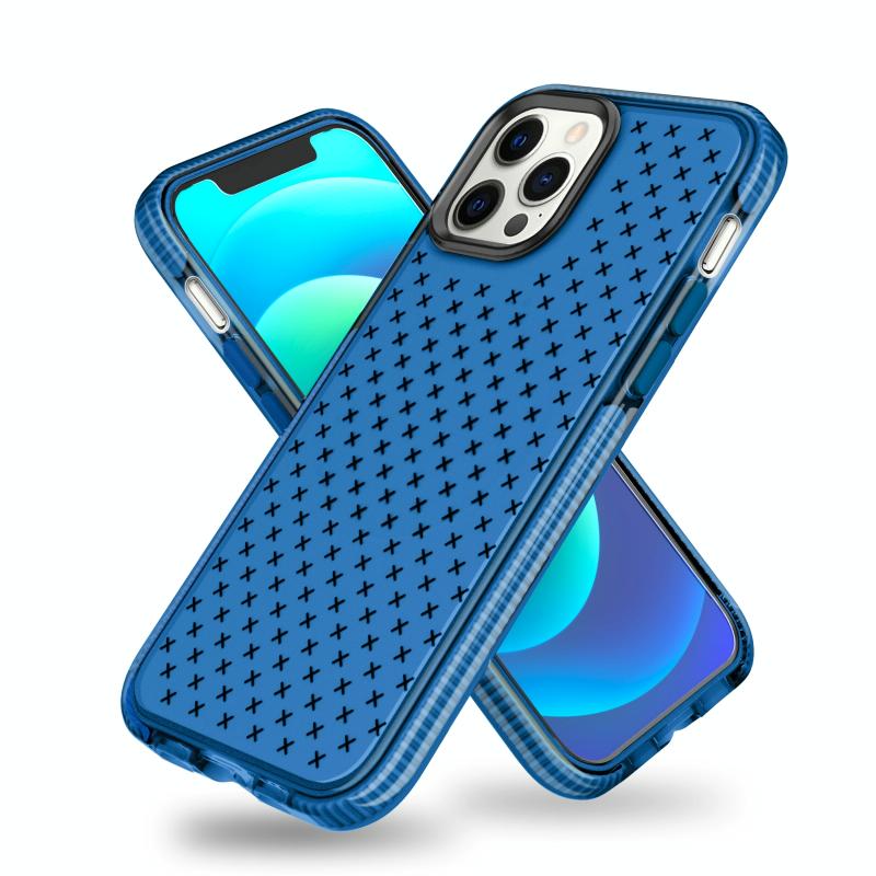 For iPhone 12 / 12 Pro Shockproof Grid Texture TPU Protective Case(Blue)