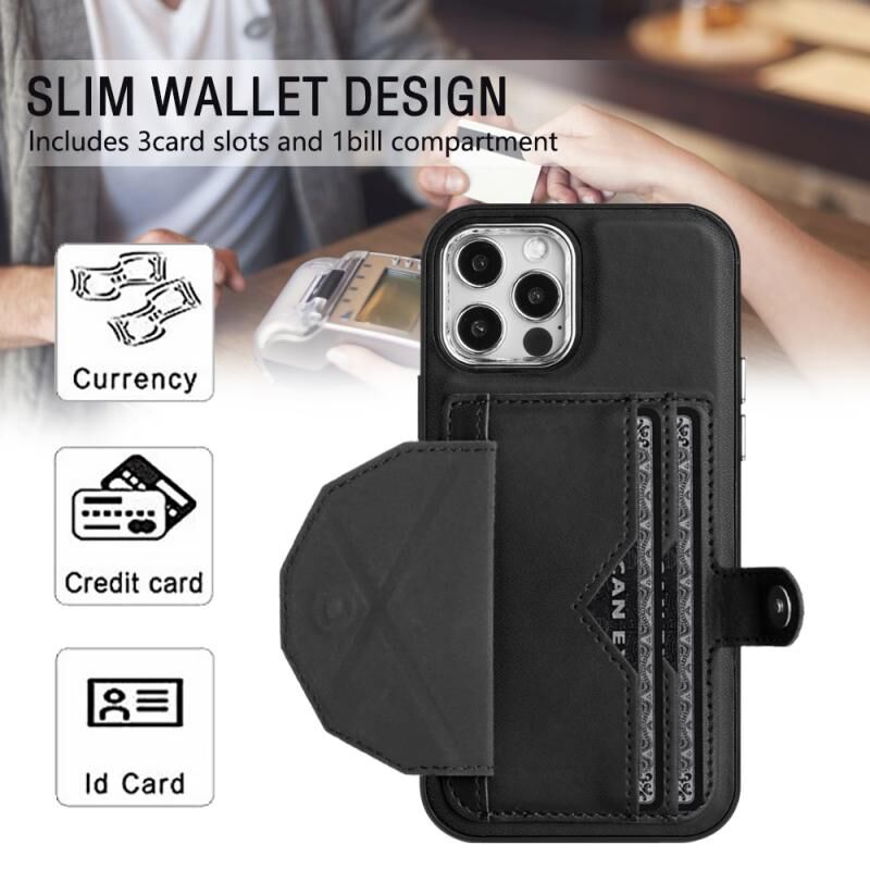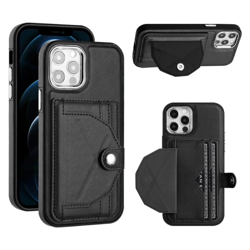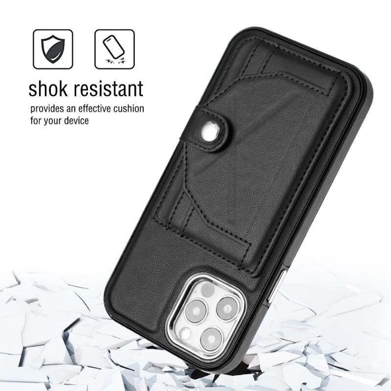 For iPhone 12 / 12 Pro Shockproof Leather Phone Case with Card Holder(Black)