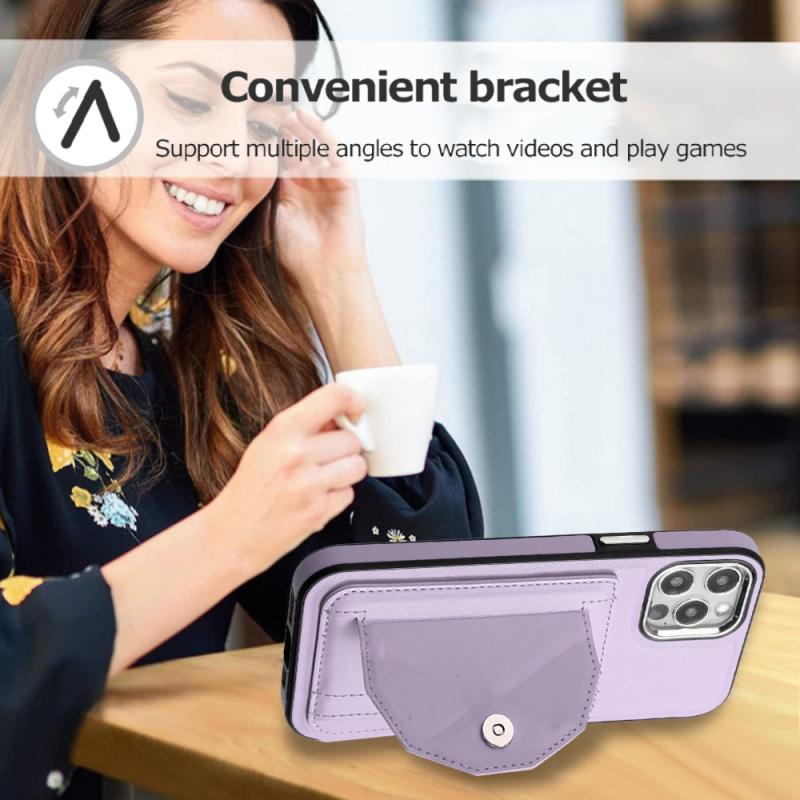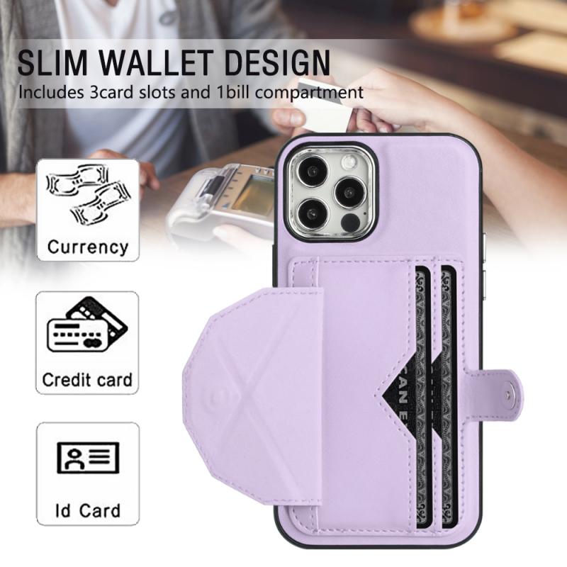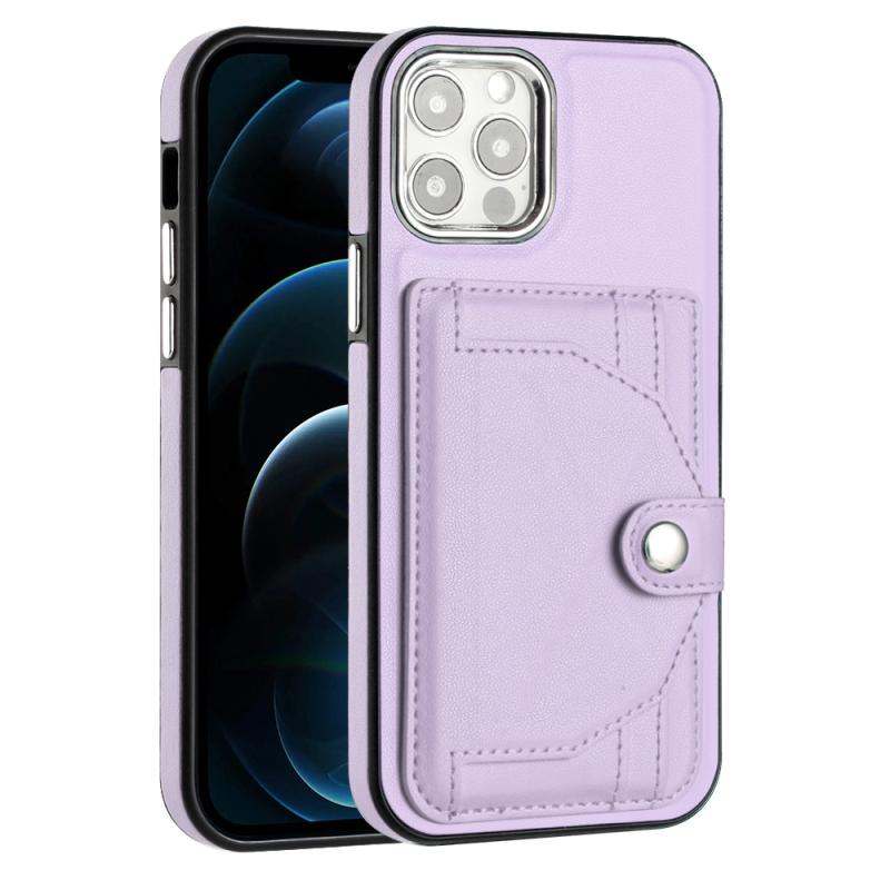 Θήκη iPhone 12 / 12 Pro ανθεκτική δερμάτινη με θήκη κάρτας (Μωβ)