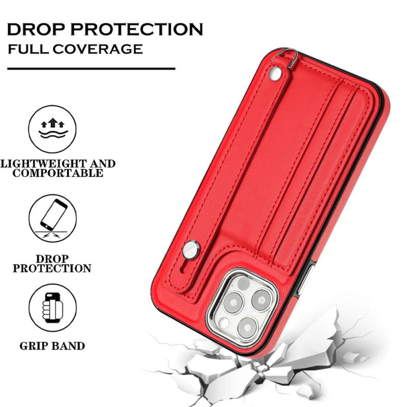 For iPhone 12 / 12 Pro Shockproof Leather Phone Case with Wrist Strap(Red)