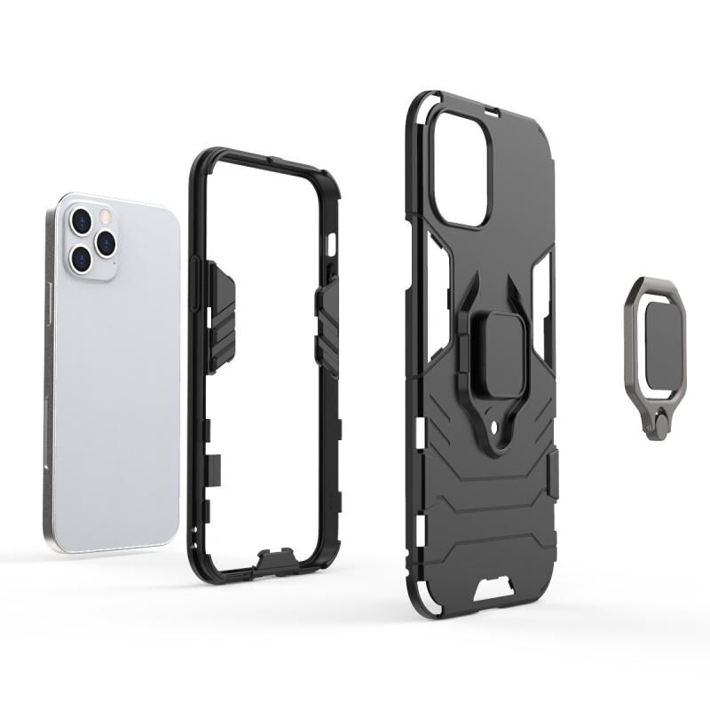 For iPhone 12 / 12 Pro Shockproof PC + TPU Protective Case with Magnetic Ring Holder(Navy Blue)