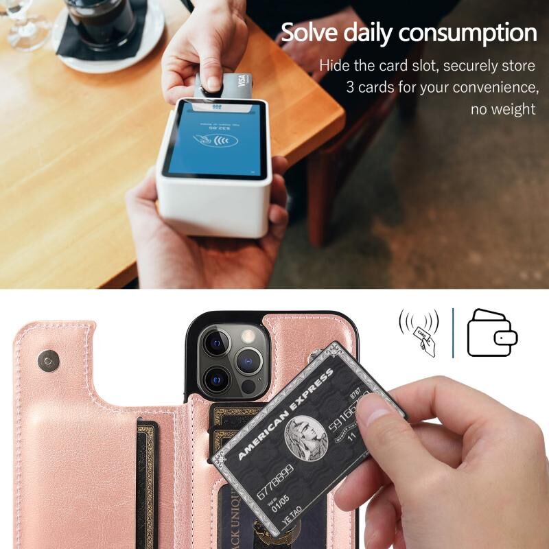Θήκη για iPhone 12 / 12 Pro ανθεκτική στις κρούσεις από PU + TPU δέρμα με θήκες για κάρτες & βάση στήριξης & κορνίζα φωτογραφιών & πορτοφόλι (Μαύρο)