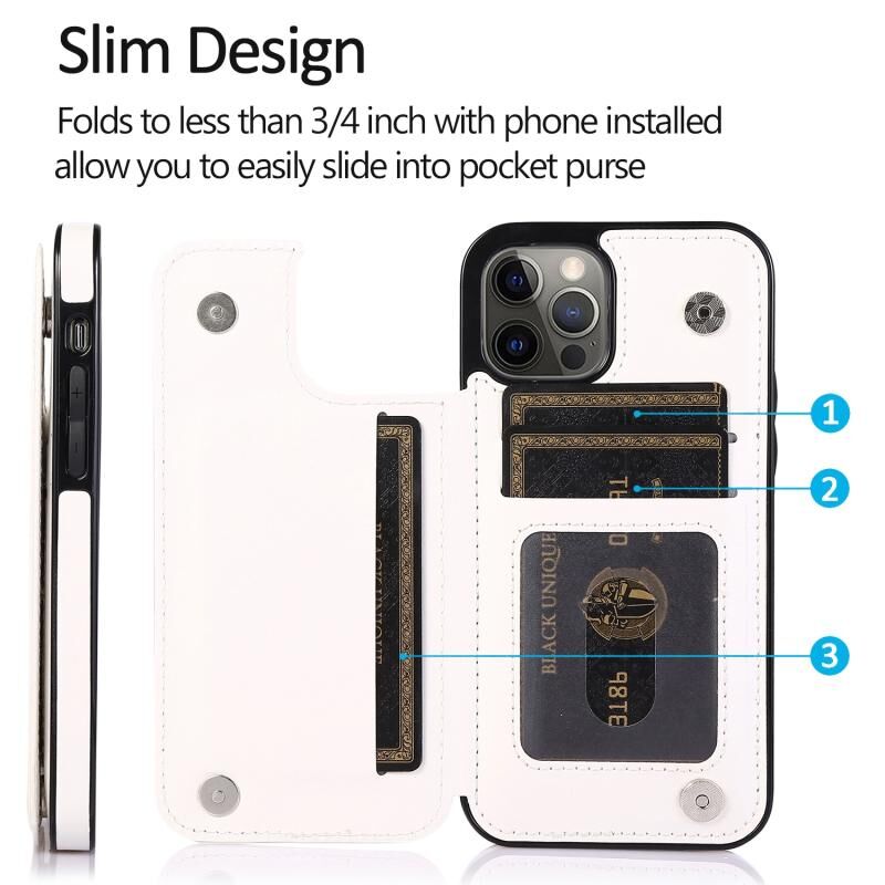 Θήκη για iPhone 12 / 12 Pro ανθεκτική στις κρούσεις από PU + TPU δέρμα με θήκες για κάρτες & βάση στήριξης & κορνίζα φωτογραφιών & πορτοφόλι (Μπλε)