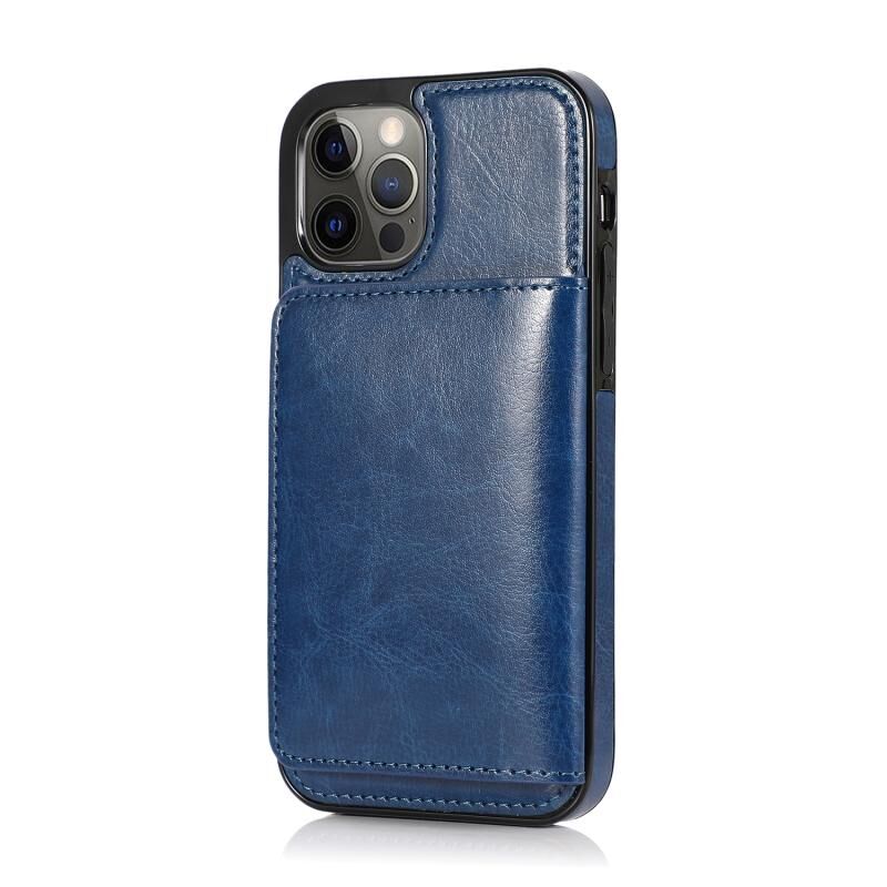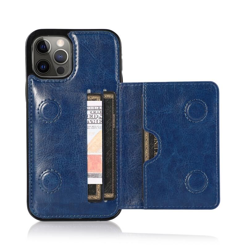 Θήκη προστασίας για iPhone 12 / 12 Pro ανθεκτική σε κρούσεις, από PU + TPU με θήκες για κάρτες & βάση (Μαύρο)