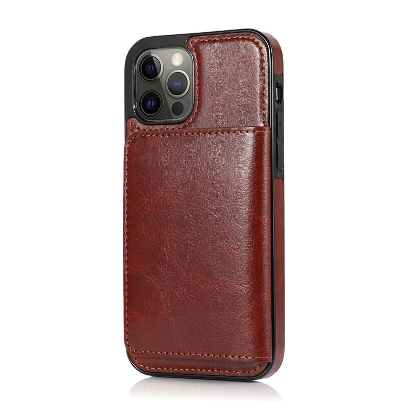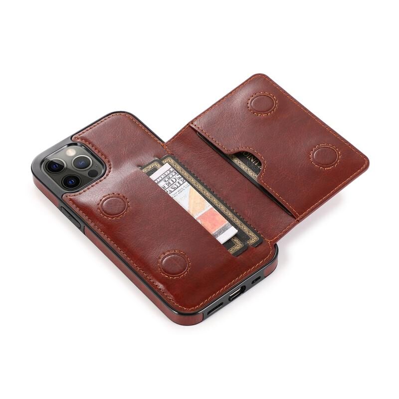 Θήκη προστασίας για iPhone 12 / 12 Pro ανθεκτική σε κρούσεις, από PU + TPU με θήκες για κάρτες & βάση (Μαύρο)