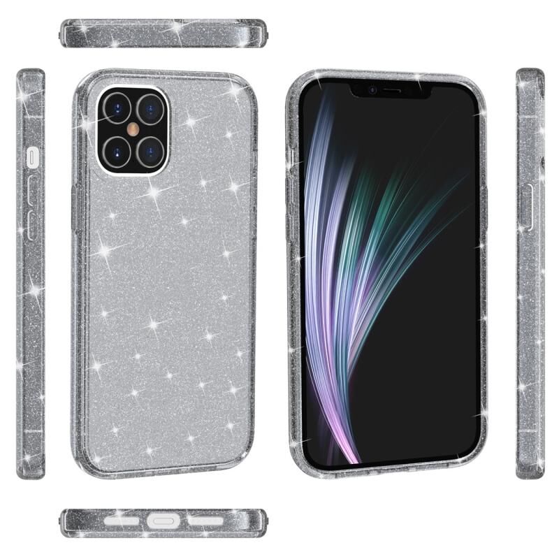For iPhone 12 / 12 Pro Shockproof Terminator Style Glitter Powder Protective Case(Grey)